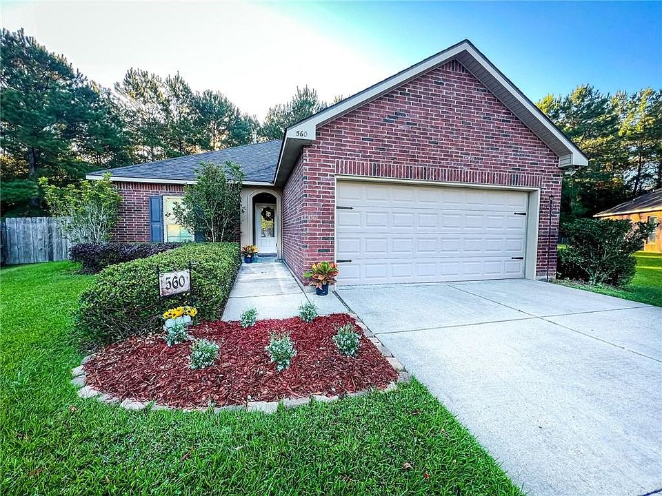 Located on a quiet cul-de-Sac and home is on an oversized lot, which backs up to dedicated green space. Home has 3 bedrooms, 2 baths with updated flooring. Has a spacious open concept , dining, kitchen and living. Primary suite has walk in closet with double sinks with views of the outdoors. Has a two car garage and large patio space for entertaining .