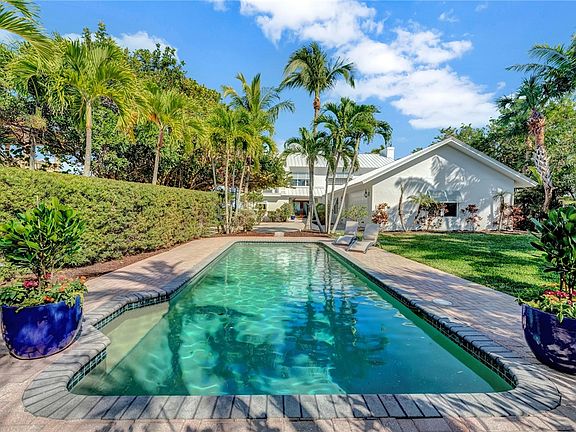 Oceanfront paradise w/100 ft. of ocean frontage & pool. Modern, sleek design throughout. Living area w/ fireplace opens to ocean view & patio. Primary suite features balcony & ocean views. Spacious kitchen. Nestled among mature palms for privacy & seclusion. Excellent location near Mooring Yacht & Country Club. Sizes approx./subject to error.
