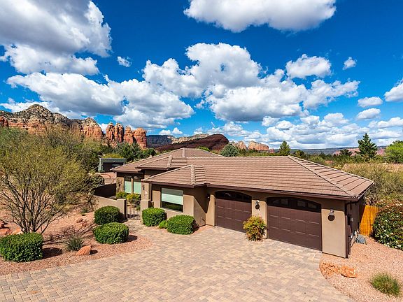 Pristine Southwestern single level home in the highly coveted Crimson View subdivision in the heart of Sedona! This stunning 3 bedroom, 3 bathroom home plus office was completed in 2014 and offers unprecedented views of Thunder Mountain.