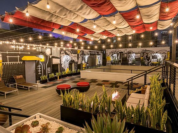 - Exterior features: 10.5 Foot Ceilings, 1000 sqft Mural by Artist James Peter Henry, EV Charging Stations, Floor Covering: Marble, Flooring: Marble, Ground Floor Retail & Dining, Large Studio Lofts & Live/Work Spaces, On-Site Maintenance, On-Site Management, Online Rent Payment, Oversized Windows, Package Receiving, Parking Available, Pet Friendly, Pre-Wired for DIRECTV in Select Lofts, Quartz Countertops, Renovated Interiors, Sundeck, View Type: Gorgeous Downtown Views in Select Lofts