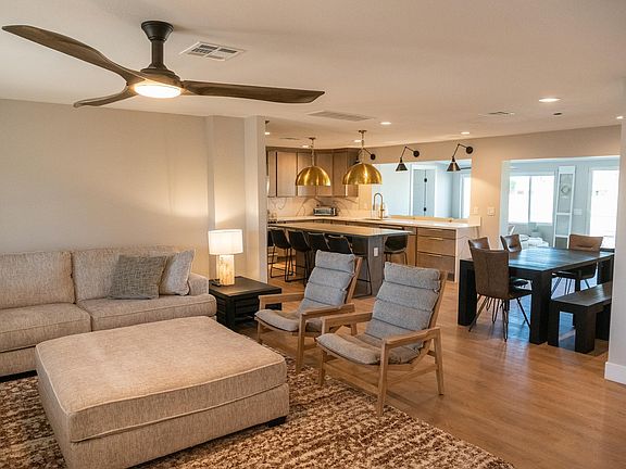 Available July 15-October 30. Fully furnished home in 55+ Community. Must be 55 year or older to apply. Newley remodeled 2 bedroom/2 bathroom home conveniently located near shopping, dining, and entertainment. Home is situated on Sunland Village Golf Club course. Beautiful golf course views overlooking two fairways. Brand new furnishings and upgrades throughout entire home. Gourmet kitchen with high end stainless steel appliances. Vinyl flooring for easy upkeep. Resort style bathrooms. Central air conditioning and mini-split heating/cooling in second bedroom for ultimate climate control. Designer landscape in front and back yard. This home has it all! Lease length negotiable. No pets allowed. 650+ credit score, monthly income must be equal to or greater than $6,300.00 or proof of substantial savings. Please reach out with any questions! Lease length is negotiable. Utilities will be set at a flat rate of $300. See property description for application criteria. One tenant must be over the age of 55. Age restricted community.