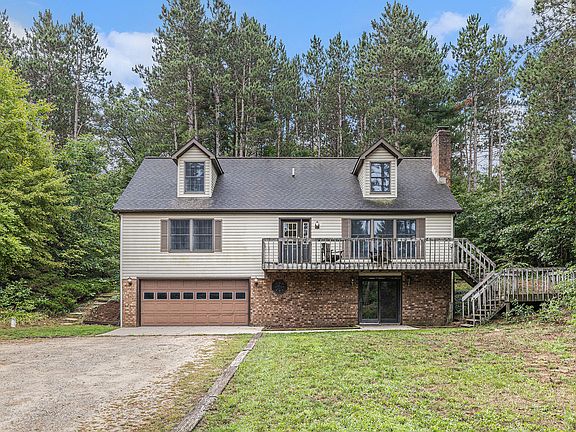 Welcome to your serene retreat in Cedar Springs! Nestled on over two wooded acres and bordered on two sides by state land, this 3 bed, 3 full bath home offers privacy and space to spread out. A two-stall attached garage plus a detached 24x28 garage provide plenty of room for vehicles, hobbies, or storage. Inside, the main floor features a light-filled living room with fireplace, dining area flowing into the kitchen, and slider to a large rear deck. The primary suite includes a beautifully tiled walk-in shower, with a second bedroom, full bath, and laundry also on the main level. Upstairs you'll find a third bedroom, third full bath, and a second living room (or potential 4th bedroom). The finished walkout basement is perfect for entertaining with a wet bar, pool table, and additional living space. This home combines comfort, functionality, and natural beauty. Schedule your showing today!