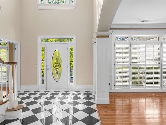 This well-maintained 4-bedroom, 3.5-bath home sits in the sought-after Sugar Mill community and top-ranked Northview High School district. With 3,616 sq ft of smartly designed space and hardwood floors throughout both levels, it features a main-level primary suite—ideal for multigenerational living or large families. The dramatic, open foyer makes an immediate impression, leading into a great room filled with natural light, anchored by a striking floor-to-ceiling fireplace and expansive vaulted architecture. The chef’s kitchen shines with granite countertops, custom cabinetry, an oversized island, and two walk-in pantries. A bright sunroom opens to a private wooded backyard, blending indoor comfort with outdoor serenity. Upstairs, you’ll find three additional bedrooms and two full baths, providing ample space for family and guests. Located in a vibrant community with top-notch amenities, you’ll enjoy access to a pool, clubhouse, playground, and tennis courts. This property offers the ideal blend of luxury and practicality.