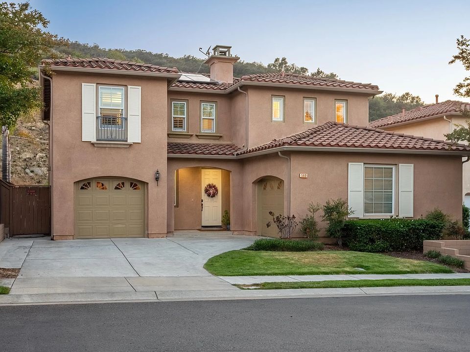 Welcome to this beautifully updated 4-bedroom, 3-bathroom home located in the gated Belleza community—just minutes from North City, Cal State San Marcos, shopping, dining, and miles of scenic trails. Offering 2,358 square feet of thoughtfully designed living space, this move-in-ready home truly has it all. Step inside to an open and airy floor plan bathed in natural light, enhanced by dual-pane windows and solar tubes throughout. The main level features a versatile entry-level bedroom and full bathroom—perfect for guests, a home office, or multigenerational living. Upstairs, the expansive primary suite is a true retreat with a large bedroom, private balcony, oversized walk-in closet, dual sinks, a makeup vanity, soaking tub, and walk-in shower. Enjoy year-round comfort and energy efficiency with leased solar, brand-new wood shutters, and blackout blinds throughout. The stylish kitchen boasts quartz countertops, a gas range, stainless steel appliances, and elegant glass-front cabinetry. Entertain with ease in the formal dining room or unwind in the cozy living room with a gas fireplace and built-in media center. Step outside to your peaceful backyard—complete with serene mountain views and no rear neighbors. Recently restored wood laminate flooring runs throughout the home—no carpet here! An upstairs laundry room offers added convenience, and the low-maintenance backyard pairs perfectly with HOA-maintained front landscaping. Come find home within a quiet, tree-lined gated community with great neighbors featuring lush green spaces and a private neighborhood park. This one won’t last—come see what life is like in the beautiful gated community of Belleza! Walking distance to The Sprinter and Cal State San Marcos!