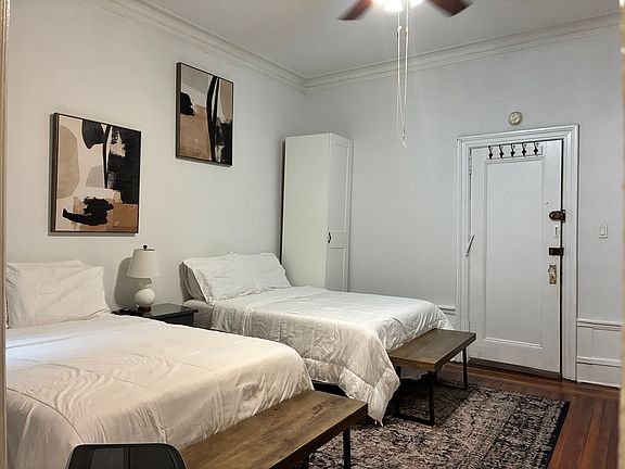Gorgeous spacious Studio available fully Furnished. All utilities included (Heat, Water, Gas, and Electricity with WiFi). Beautiful Brownstone building with lovely original details throughout. Situated on the 1st floor it offers spacious living and sleeping area. Fully furnished with all the proper necessities creating a functional living space 2 full size beds that can be combined and made into king size bed. The kitchen is equipped with stainless steel appliances including microwave, also includes all kitchen utensils with a large tranquil bathroom with deep soaking tub. Available for short or long term rental 6-12 months.