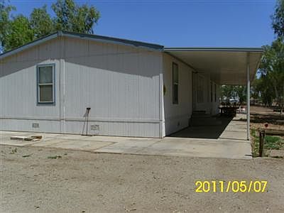 HomeSteps is offering this well cared for Double wide that is 28x76 on permanent foundation. There is a 10x76 front awning & 10x27 rear awning, a 10x38 concrete slab on south end for carport & Entry steps for front and rear doors. Has large living and dining area, central kitchen, massive master bedroom with private bath & connecting Office or TV Room. Two bedrooms on the south end, one if which is the size of two rooms & has a walk in closet. Upgraded flooring in the Kitchen, Family Room, Living Room & Dining Area. The 3.42 acre parcel is set up for horses. There is a shade, rails, paddock is set up with two front gates for ingress & egress. City water is hooked up at the meter for domestic use and country water is used for irrigation and for stock. The Seller is offering a HomeBuyer Incentive: The Seller may pay up to 3.5% Buyers Closing costs & may provide Buyer with a 2 year HomeProtect Limited Home Warranty Plan. Some limitations apply. visit: www.HomeSteps.com/smartbuy.htm