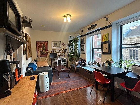 Beautiful brownstone buildingLarge bedroomGorgeous south facing viewsWide plank hardwood flooringHigh ceilingsStainless steel appliancesWall of windows