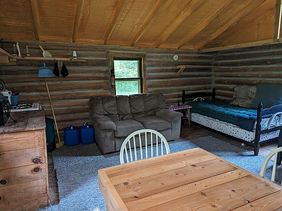 "Agents must be present on all showings" Now available is this 20 wooded acres with log cabin. This is a great property to get away from it all. The balsam built log cabin was constructed in 1985 and is 17 X 17, one room, vaulted spray foam ceiling, two beds, dining table, lp wall furnace, lp kitched stove and the electric is run by a generator. This cabin is super clean and sits in a very private setting. Also included is a deck, a lean too and an outdoor biffy. The 20 acres is totally wooded, flat in nature with a trail meandering throughout. Back at the cabin is a large beautiful groomed yard with plenty of room for motor homes, campers tents or a future garage or home. Expect to see many forms of wilelife. The driveway coming in is solid and very useable. A portion of the driveway near the road is used by this owner and the owner to the north with a leagal easement agreement in place. There is also tons of state and county public land close to this property. Just drive up to the cabin, unload and enjoy.