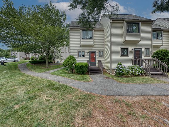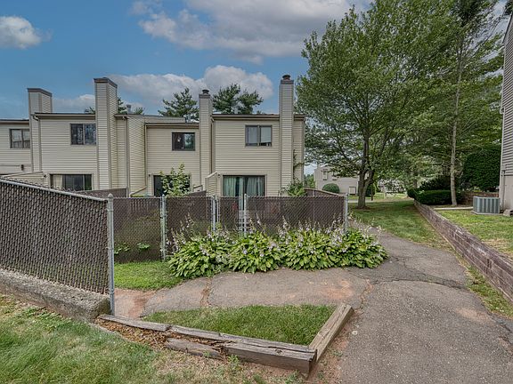 Don't miss this opportunity to live in desirable Sterling Village. This rare end unit offers three floors of living space. Step inside to a pretty entry with tile flooring, a half bath to your right and large handy coat closet. You will love your kitchen to the left with stainless steel appliances, updated cabinetry and tile flooring. Your dining area is just off the kitchen with a nice ceiling fan and engendered hardwood flooring. This flooring carries through into the large living room with sliders to your private deck and fenced in area , so nice for furry friends. An open staircase leads you upstairs to two large bedrooms and a remodeled full bath. Similar hardwood is on this second level as well. The lower level is partially furnished with wall to wall carpeting. The is a utility and storage area as well as a washer and dryer. The electric water heater is brand new. This unit is fueled by oil heat and it has Central Air !!! This complex is well maintained FHA, VA & CHFA are all A-OK. Enjoy the in ground pool, tot lot and tennis court ... all wonderful amenities. All in all, this is a great place to live at a great price point. Come take a look today !!!
