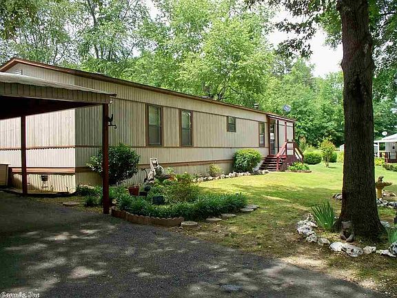 Affordable home in Lake Hamilton school district. School bus drives through the neighborhood. This 2 bedroom 2 bath mobile home features a split floor plan, large sunroom(easily converted to a 3rd bedroom), central heat and air with back up wall mounted space heaters, 2 car carport w/hurricane fan & motion sensor security lights, and storage building in a nice community with a stocked pond within walking distance. Home features some handicap accessible features and has a new roof and hot water heater.