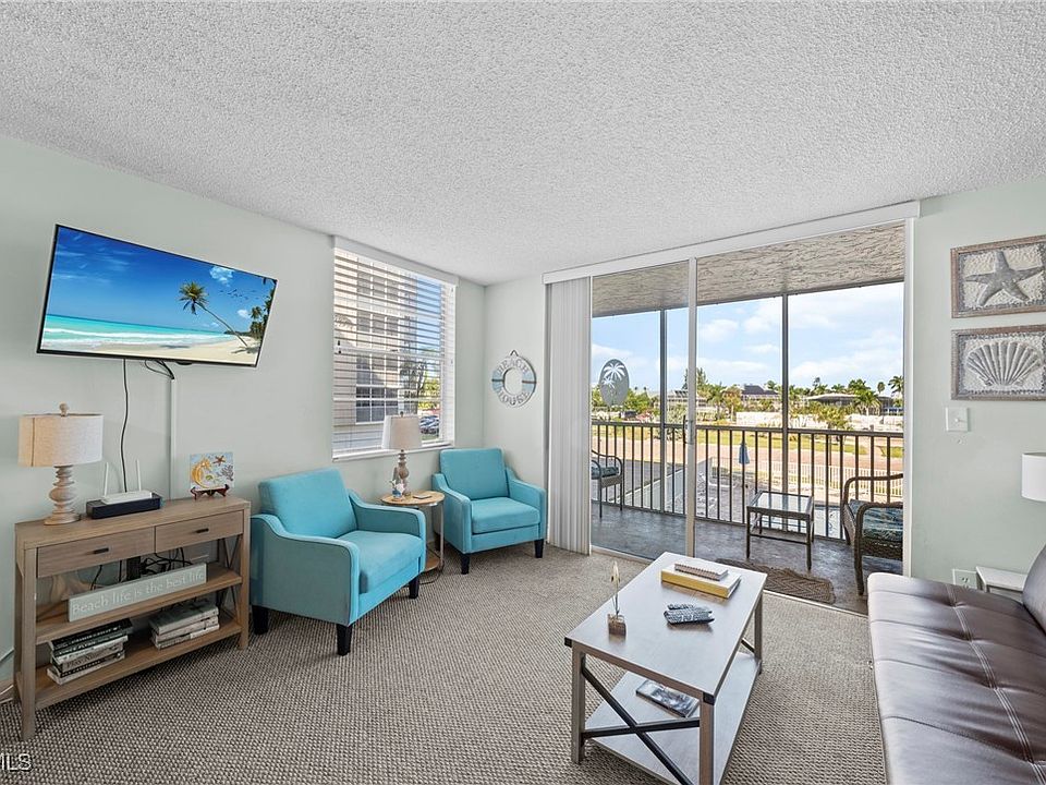 Welcome to coastal living at its finest. This turnkey-furnished one-bedroom, one-bath condo offers a relaxed beachside lifestyle just steps from Bonita Beach. Located in the Beach and Tennis Club, the unit features a screened lanai overlooking the newly renovated pool and spa. Inside, enjoy a bright and inviting space with tile and carpet flooring, wall unit A/C, and a fully equipped kitchen. The community provides easy access to dining, shopping, and Barefoot Beach. Ideal for seasonal use or rental income, this property combines convenience with charm in a sought-after location.
