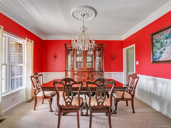 Chesterfield (Area 54 ; Qualla Farms Subdivision) This 2- story maintenance free vinyl home situated in a cul-de-sac boasts 4 bedrooms, 2.5 baths, 2,495 sq. ft., mature landscaping, paved driveway, finished 2-car front entry garage, fully fenced in rear yard, rear deck and precious screened in porch for relaxing. Welcoming foyer, formal dining room, spacious family room offers brand NEW neutral carpet and a gas fireplace which flows openly into the eat-in kitchen for easy entertaining! Eat-in kitchen offers ample cabinet and counter space, pantry, stainless steel appliances and updated pendent lighting. Upstairs you'll find a large Master Suite with vaulted ceiling, walk-in closet and en suite with soaking tub, shower and double vanities! Laundry room and three additional bedrooms each offering large closet space & easy access to the hall bathroom complete second floor. Conveniently located to shopping, restaurants and a very close commute to 288 & Powhite Pkwy!