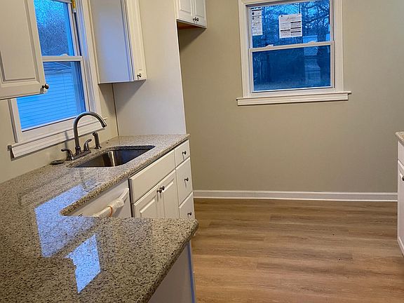 New kitchen with granite countertops.