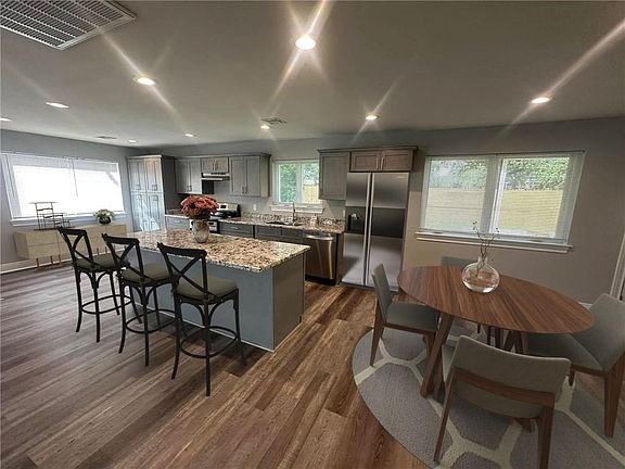IMPROVED PRICE! This inviting open-concept floorplan seamlessly blends the kitchen, living and dining areas, creating a spacious and functional space for everyday living and entertaining. The kitchen features a large center island with bar seating, offering ample prep space and a natural gathering spot that flows effortlessly into the surrounding areas. Clean lines, consistent flooring, and abundant natural light tie the spaces together, while thoughtfully placed lighting and cabinetry enhance both style and convenience. Whether you’re cooking, relaxing, or hosting guests, this open floorplan will be enjoyed. Seller spared no expense preparing this home for YOU. Beautiful Kitchen features soft close cabinets and granite countertops along with a range oven, dishwasher, and sink - ALL New. Beautifully Renovated 2 story home situated on a corner lot. Located in Aurora Gardens in Algiers, this home is move in ready! NEW Roof (Architectural shingles) installed within past 10 months. Renovated in 2025 with wonderful wood laminate floors throughout the entire 1st floor and also in all bathrooms. Bedrooms have new carpet that adds a cozy feel. All bedrooms are located upstairs along with the primary bathroom and a 2nd full bath. Large fenced rear yard, nicely landscaped front and back yard, with rear patio offers outdoor entertaining. Easy access to the City or just a short drive to Algiers's Point which offers restaurants, shops, and the ferry. (Home sale does not include a refrigerator or furnishings, pictured in the virtual staging.) X Flood Zone - Flood Insurance is Optional for this property.