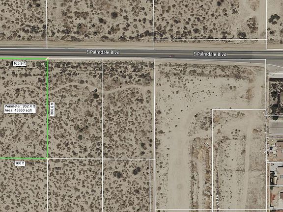 1.14 acre lot between tract homes with utilities in the street. The lot has 165 feet of paved frontage on Palmdale Blvd at approximately 56th Street East. APN 3023-002-087.