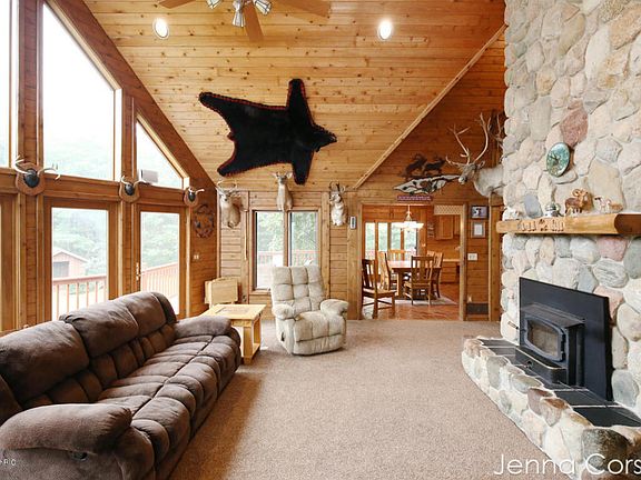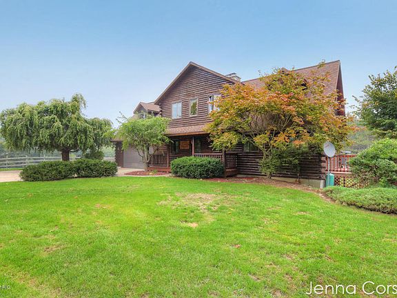 Rustic Log Home heated with Geothermal on 13.4 Beautiful Acres with a Large 30x40 Pole Barn where the seller added a additional attached lean to complete with 8 horse stalls, a large bonus loft capable of storing 800 Square Bales, Large Pastures, and a Riding Arena.This interior is a Rustic Charmer for sure offering a Large open floor plan with Cathedral Ceilings custom made with Tongue and Groove Knotty Pine Staying true to the rustic nature, Big Windows, 2 Full Large Kitchens, 2 Fieldstone Fir eplaces, 4 Bedrooms, and 3 Full Bathrooms. The home is located in a secluded and private location but sits in Thornapple Kellogg School District, and is only 30 minutes from Grand Rapids & 10 minutes from Middleville or Hastings. This is a Horse Lovers Paradise, and Hunters Sweet Spot surrounded by beautiful mature trees and open fields it's the best of both worlds if you are looking to move into the Country! Call Jenna Corson at 269-838-0659 for your private showing today.