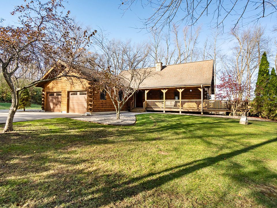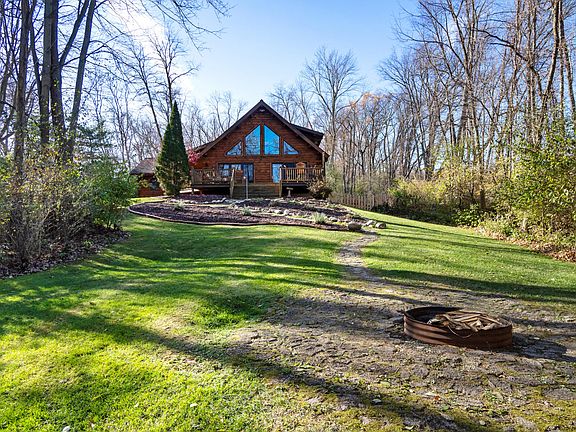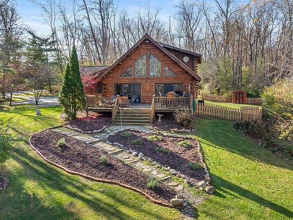 Modern log cabin tucked away on 2 wooded acres that delivers that 'up-north' feel—right here in Jackson County. This home has been thoughtfully designed from top to bottom and offers modern features that every buyer loves. The inside has an inviting layout with a beautiful fireplace with stone surround, vaulted ceilings, and a gourmet kitchen with stainless steel appliances and granite countertops. The two main floor bedrooms are exceptionally large. The private upstairs primary suite offers a full tiled shower and plenty of closet storage. The full basement features tall ceilings and excellent potential for storage or future finishing. Outdoor amenities include an expansive deck, a covered front porch, and a private firepit area surrounded by trees. A great opportunity to enjoy modern living with peaceful, wooded surroundings. It's a property that captures the peaceful 'up north' feeling yet keeps you close to everything Jackson County has to offer.