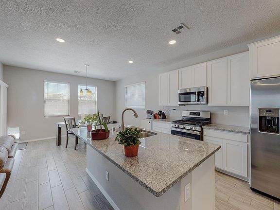 Beautiful Modern almost new Abrazo smart home. No need to wait for a new build, this is already done and move in ready. Built in Feb 2021, this home has a great view from the upstairs master balcony, Lights, garage door, and entries can be programed and controlled by your phone. The east facing covered porch is great for those warm summer evening bbq's. It has a larger than most backyard with Turf and easy maintenance landscape with a block wall. The kitchen is spacious and open with an island.