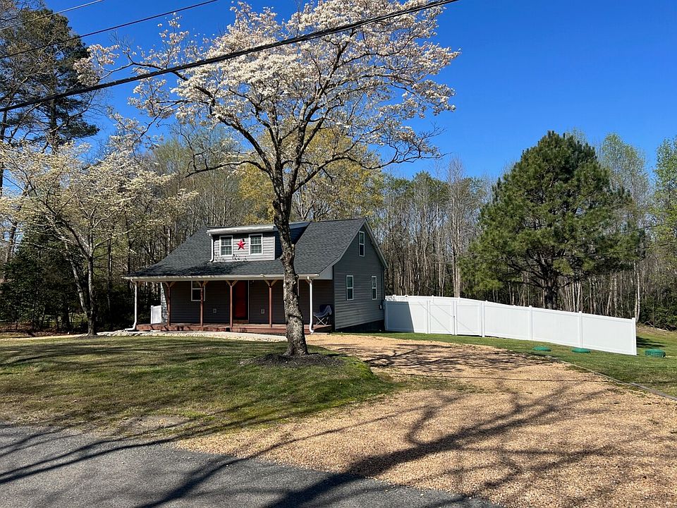 You will fall in love with this beautifully updated farmhouse-style home, perfectly set on just under 2 acres of land. Offering the best of both worlds—peaceful country living and easy access to everything the Greater Williamsburg Area has to offer—this home is only 15 minutes from shops at the Williamsburg Outlets, dining, and entertainment. Step onto the inviting full front porch and into a light-filled open-concept living space that blends modern style with farmhouse warmth. The living room, dining area, and kitchen flow seamlessly together—ideal for entertaining or relaxing with family. The kitchen features granite countertops, stainless steel appliances, and vinyl plank flooring throughout. The primary suite is conveniently located on the main level, offering comfort and privacy, along with a laundry room and powder room for guests. Upstairs, you’ll find two spacious bedrooms that share a full bath, perfect for family, guests, or a home office. Outside is where this home truly shines! The expansive yard is fully enhanced with a 6-foot vinyl privacy fence and plenty of space for outdoor living—grilling, gathering around a fire pit, playing games, or letting your animals roam freely. A well-built outdoor shed is also on the property and could be a workshop, garden shed, additional storage, or whatever suits your family. Come experience modern farmhouse living! 1.89 Acres 1,456 sqft, 3 Bedroom 2.5 Bathrooms Owner/Agent Listing