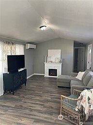 This adorable, manufactured home is light and bright, featuring 2 bedrooms and 1 3/4 baths. The split bedroom design includes a primary bedroom with a tiled shower and walk-in closet. The kitchen, with an eat-at island and skylight, opens into a large living area. A recently added mini split system ensures comfort on warm days. Washer and dryer are included for future owner convenience. Yard is fully fenced with locked gate and Dogs are allowed per park approval requirements. Don't miss out—call today!