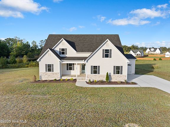The Retreat Plan offers Everything and More! This four-bedroom, 3-full-bath, 3-car-garage, 1.5-story home lives like a Ranch on the first floor with three bedrooms and 2 Full Baths. The Primary Suite is located opposite the other two bedrooms, giving the owner privacy. The Fireplace accentuates the Vaulted Family Room with Statement Wood Beams and rich LVP flooring. Open Kitchen with wood accent Island, upgraded lighting, Breakfast area overlooking the Spacious level backyard, and Relaxing SCREENED PORCH!Upstairs has room to spare with a Tremendous Recreation/BONUS room, 4th Bedroom with its own private bathroom, walk-in closet, and linen. There is also walk-in storage with future expansion capabilities! All of this on almost an acre lot in a cul-de-sac in one of the Best neighborhoods in Spring Hope! Compare the VALUE! Wainscoting, Tile Master Bath, Wood shelving, Sealed crawl Space, and a floor plan that is hard to beat! You will not feel on top of the neighbors in this Spacious neighborhood!