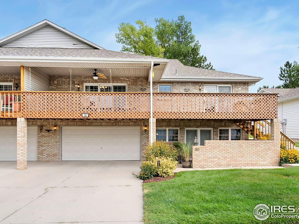 Experience patio home living at its best. This all brick patio home backs to the Aims Community College pond. Move in and enjoy this tastefully updated home. The main floor features a large kitchen and great room with expansive views to the west and a patio that runs the length of the home with a gas line for your grill. The main bedroom has a full bath with double sinks as well as a large walk-in closet and a door to the covered patio overlooking the pond. The second main floor bedroom is large and also has pond views. The walkout lower level has another patio and features a great room, bedroom with beautiful full bath and an office area. RV parking is available for owner occupants. The 4 car tandem garage has storage galore and a sink.