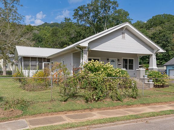 Located in Historic Saint Elmo, this 2 bedroom, 2 bath bungalow is positioned on a fenced double lot and boasts an out-building with an office, storage and covered patio area. Exuding curb appeal with its covered front porch, mature landscaping and side garden area, you will also appreciate the interior features, such as the open floor plan, crown moldings, hardwood and tile flooring, recessed lighting, tankless water heater, updated kitchen and baths and more! The living room is spacious and open to the kitchen and could easily accommodate a dining area if desired. The kitchen has painted cabinetry, built-in spice drawers, a raised dining bar with pendant lighting, stainless appliances and access to the rear mudroom/laundry with storage cabinetry and access to the rear deck and back yard. The primary bedroom has a walk-in closet, French doors to the screened in porch and the recently renovated primary bath with its new dual vanity, claw-footed tub and separate shower with chevron-patterned subway tile. The guest bedroom is at the front of the house and has a side door to the exterior and a private bath with a furniture style vanity with a tub/shower combo. Head out back to the detached structure that has an office area and an adjoining storage room with barn doors to a covered patio area. All of this, and you are in a great walking neighborhood just minutes to the community playground and downtown Chattanooga, so please call for more information and to schedule your private showing today. Information is deemed reliable but not guaranteed. Buyer to verify any and all information they deem important.