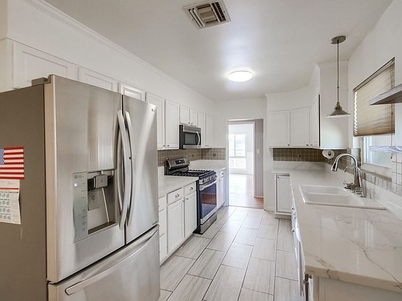 The main house has 4 BEDROOMS AND 2 BATH. The kitchen has been remodeled with quartz countertops, new flooring, new gas stove and microwave and freshly painted.
