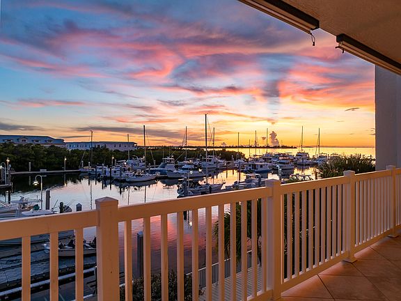 Welcome to Sunset Marina, a prestigious gated condominium community known for its breathtaking sunset views. This rare corner unit offers 1,558 sq. ft. of well-designed living space, featuring 2 bedrooms and 2 bathrooms with sweeping views of both the Gulf and marina.The expansive living and dining area is enhanced by a built-in bar with a mini-fridge and mirrored shelving, while sliding glass doors open seamlessly to an oversized deck. Elegant porcelain tile flooring runs throughout, combining style with easy maintenance.The kitchen is appointed with granite countertops, stainless steel appliances, and a concealed laundry area with additional storage. The primary suite features private access to the deck, a side terrace overlooking the marina, and an oversized custom walk-in closet. The second bedroom is equally inviting, filled with natural light and complete with dual closets.Community amenities include a resort-style pool, hot tub, and clubhouse, making this residence an ideal full-time home or vacation retreat. Conveniently located just 10 minutes from downtown Key West, Sunset Marina also offers boat slips available for purchase (none deeded to this unit). This unit has an assigned covered parking space and a storage closet in the garage.There are several boat slips of various sizes available for sale right out your door.