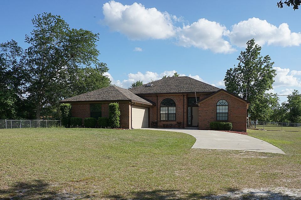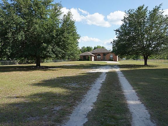 No HOAs, No CDD, No Extra Fees! Beautiful 4 bedroom, 3 bath home with an office that can be used as 5th bedroom (has closet), split bedroom plan with a second master/in-law suite, in Middleburg on 1.75 acres. Less than 10 minutes to Publix and 16 minutes to Walmart. Property is cleared with mature, gorgeous Oak trees and has a fully fenced and crossed-fenced yard. Brand new Siding, roof is four (4) years new, newer carpet and wood tile floors, Trane A/C, wood-burning fireplace, Lanai, two-car Garage, large bathrooms and Walk-in Closets, partial irrigation, and three (3) Sheds on the property (7x7, 10x14, and brand new 20x20 concrete floor, steel building), along with a one-year-old playground. If you're looking for land with a beautiful home, this is just for you!