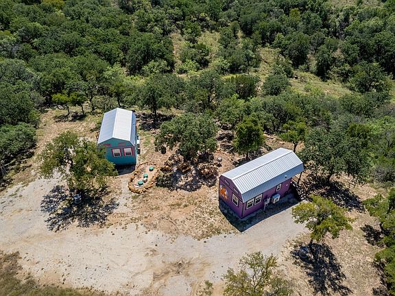 Turnkey, income-producing property ready for a new owner! Situated on 6.4 acres at Lake Brownwood, 2 recently built cabins are already bringing in a steady income through short-term AirBNB rentals. The cabins are fully-furnished and professionally finished, with a whimsical theme (Octopunk and Galatikitty) expertly-executed to delight guests. Each one bed, one bath unit sleeps 4 and features a well-stocked kitchenette, loft, washer-dryer, mini-split units, and a common open-air courtyard with 2 outdoor grills and picnic area. This hideaway is flush with oak trees and wildlife. The cabins benefit from a beautiful overlook of the native landscape with notable elevation changes, allowing guests to enjoy the tranquility of nature. Positioned directly across from the 4H Agrilife Conference Center, 5 minutes to the Hideout Golf Club and Resort, 10 minutes from Lake Brownwood State Park, and 12 minutes to Brownwood, the property is located perfectly to provide access to activities and events for any visitors to the area.