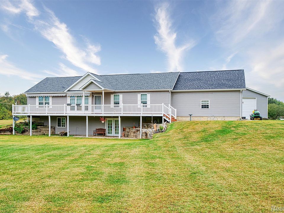 Beautiful 3-bedroom, 2-bath ranch built in 2017, perfectly situated on just over 20 acres of woods and wildlife. The desirable split floor plan offers a private primary suite on one side and two additional bedrooms on the other. The home features an unfinished walkout basement, providing plenty of potential for added living space. Enjoy peace of mind with a whole-house Generac system. Outdoors, you’ll find a stocked pond for fishing, abundant hunting opportunities, and room to roam. A massive 30x70 insulated and heated pole barn is a true bonus—complete with water, electric, a bathroom, and kitchenette—making it ideal for hobbies, storage, or gatherings. An additional outbuilding provides even more storage. Country living at its finest, yet with all the modern comforts.