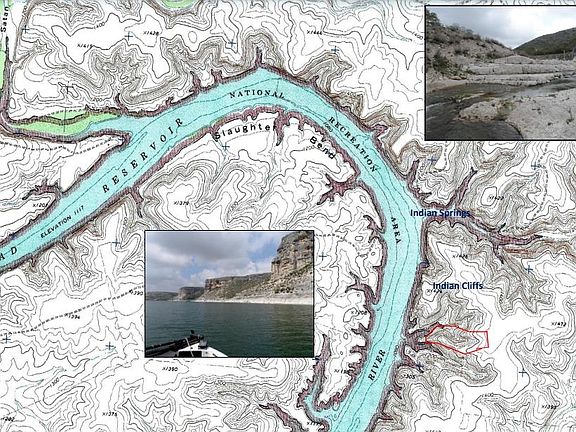 Lots J & K in the Rough Canyon area of Val Verde County, Texas. Total of 25.34 acres which includes a box canyon and 700 feet adjoining the Amistad Reservoir. Beautiful views of the canyons, riverside cliffs, Devils River, and Lake Amistad National Park. This property also has two caves located along the south canyon rim. A large crushed limestone pad site has been installed along with a locking pipe gate. Aoudad, deer, bobwhite, and blue quail are common sights in the Rough Canyon area. This property is located less than a mile from the infamous Cliffs and Springs. Power is available to the property, but no power pole has been set. There are several level sites suitable for building and a nature trail that runs down to a scenic overlook. Just 10 minutes from the Rough Canyon boat ramp. Buyer is financially responsible to install water well and septic system.