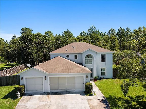 Welcome to this lovely two story home in the heart of SW Ocala. The wood fence provides privacy on this huge half acre lot. Conveniently located near shopping, grocery stores, and 20 mins away from downtown Ocala. 3 Bedrooms with a bonus room that can be used as spare bedroom, office, or a flex room.Connected screened in lanai area is perfect for your morning coffee. Must see for yourself. (Workshop needs TLC, owner willing to remove it should buyer want it gone). Must see in person!