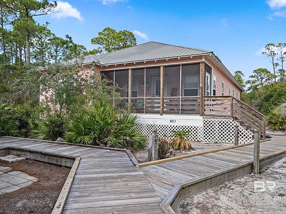 Unit 801 is a gorgeous, turnkey cottage just waiting for you and your family to enjoy and/or, you could use it as an investment beautiful pine flooring throughout, an updated, tiled, primary shower area, coastal decor, and a full size, side by side washer and dryer. This floor plan's open concept is stunning with its living room, dining room and kitchen spanning the entire width of the home, making it perfect for entertaining family and friends. This particular cottage features a spacious and updated screened-in-porch, with rolldown privacy blinds perfect for relaxing time outdoors. The Rookery is a quaint beach community full of colorful cottages, the beautiful sounds of nature and plenty of shared amenities. Located approximately 16 miles down Fort Morgan Rd. and borders Bon Secour National Wildlife Refuge, a protected nature reserve spanning over 7,000 acres. These brightly colored cottages are scattered amongst lush landscaping native to the Gulf Coast. The Rookery cottages are located 1/4 mile from a public beach access just off Cortez Street. It would take you less than five minutes to reach the beautiful sugar sand beaches of Fort Morgan. Many owners make the quick trip over using their golf carts or bicycles. Other great Rookery amenities including two outdoor pools, one with a swim up tiki bar area, hot tubs, grilling & picnic areas, tennis courts, and trails for those who enjoy exploring nature. The Rookery has designated boat and trailer parking. The Pines Boat Launch is about 2 miles east of The Rookery and offers a public ramp with direct access to Bon Secour Bay. One more item to note for The Rookery would be its very well-maintained condition. The HOA covers maintenance on the exterior of the cottage, roof, walkways, screens and much more (see Rookery Unit Exterior Responsibility - Guidelines as well as other documents) in MLS Docs. Buyer/buyer's agent, to verify all information during due diligence. Buyer to verify all information during due diligenc