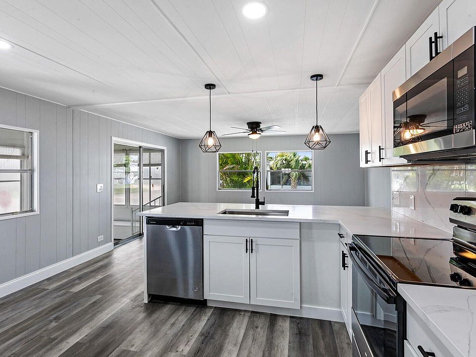Fresh paintEastern exposureQuartz countertopsHurricane protection on windowsBright florida roomBrand-new kitchenNew vinyl flooring