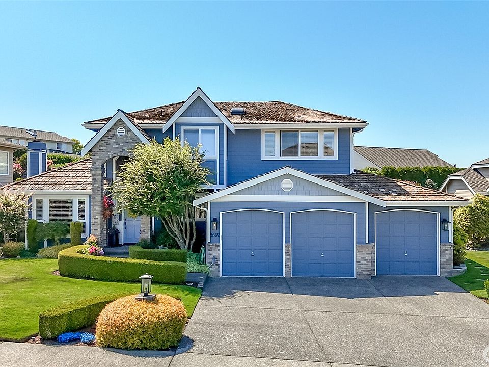 Located in the coveted Pinnacle Point neighborhood, this beautifully remodeled and spacious 4-bedroom, 2.5-bath home blends luxury with stunning natural surroundings. Enjoy views of Puget Sound, Maury Island, and the Seattle skyline from multiple vantage points throughout the home. The gourmet kitchen, remodeled in 2020, features sleek KitchenAid appliances, double ovens, an induction range, steamer, and warming drawer. The layout effortlessly flows into the dining and living areas, perfect for entertaining. The primary suite, remodeled in 2025, offers a serene, modern retreat. Add't highlights include fresh exterior paint, a 3-car garage, ample storage, and a meticulously maintained & landscaped yard. Turn-key ready in a premier community!