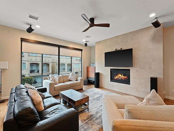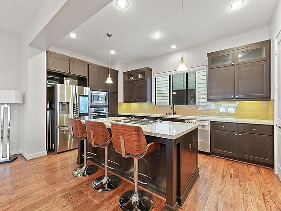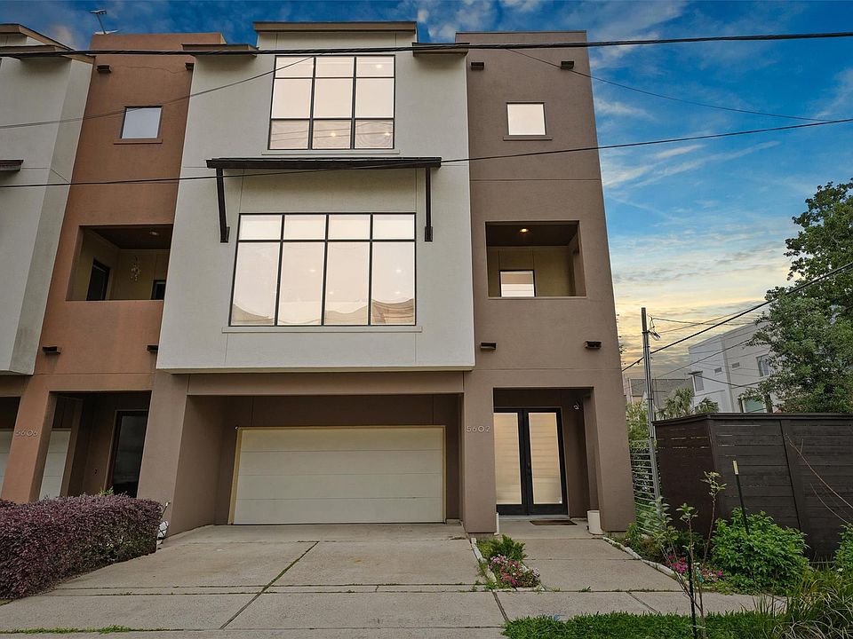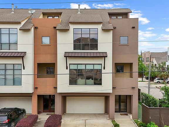 Enjoy luxurious living in this modern 4 story, featuring a breathtaking view of Houston from the rooftop deck! Large primary bedroom with an enormous walk-in closet, built-in dressers. Primary bath has double-sinks, shower and jetted tub. Open kitchen with under-cabinet lighting, new cooktop, & trash compactor! Custom finishes throughout the house pair well with solid oak flooring. Each bedroom has a full bath. The living area is fully equipped to entertain, with hardwired speakers, a gas fireplace, and full wet bar area. 2 car garage with extra space for storage - Plug in your Electric Vehicle or Generator from this garage with a 50amp/240v Nema Plug! Side Yard is 10' x 50'. No HOA! Recent updates include water heater 5/25, high-efficiency side-discharge AC Condensers/Coils 4/25, updated privacy fence. Partially prepped for solar panels with a panel on the 4th floor.