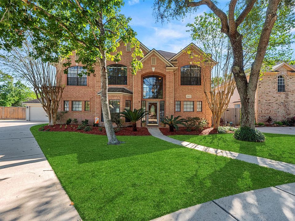 Beautifully updated 2-story home featuring 5 spacious bedrooms, 3.5 bathrooms, and a sparkling pool/spa perfect for entertaining! Inside, enjoy fresh paint throughout—including cabinets—and stylish LVP flooring downstairs. The family room offers a cozy gas log fireplace, while the kitchen boasts granite countertops, stainless steel appliances, and ample cabinet space. Upstairs includes a large game room and a 2nd primary suite—ideal for guests or multigenerational living. Solar screens on all windows enhance energy efficiency, and recent A/C units (upstairs 2025, downstairs 2023) ensure year-round comfort. The detached 2-car garage and long driveway provide plenty of parking. Beautifully updated and maintained, this home blends comfort, function, and style—inside and out! Zoned to Pearland ISD. Easy commute to Downtown. Make your showing appointment today!