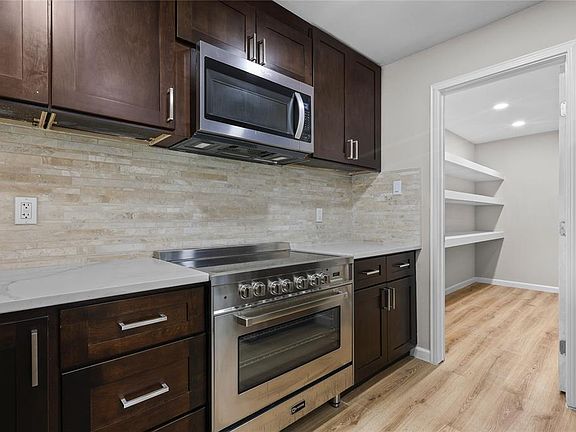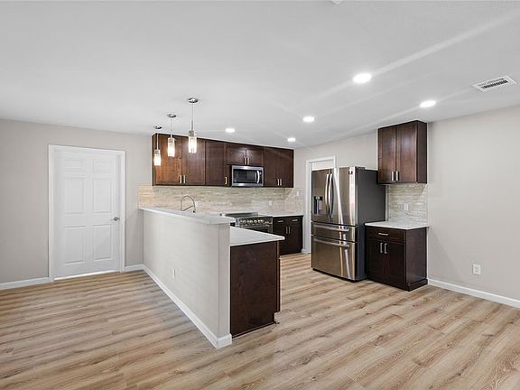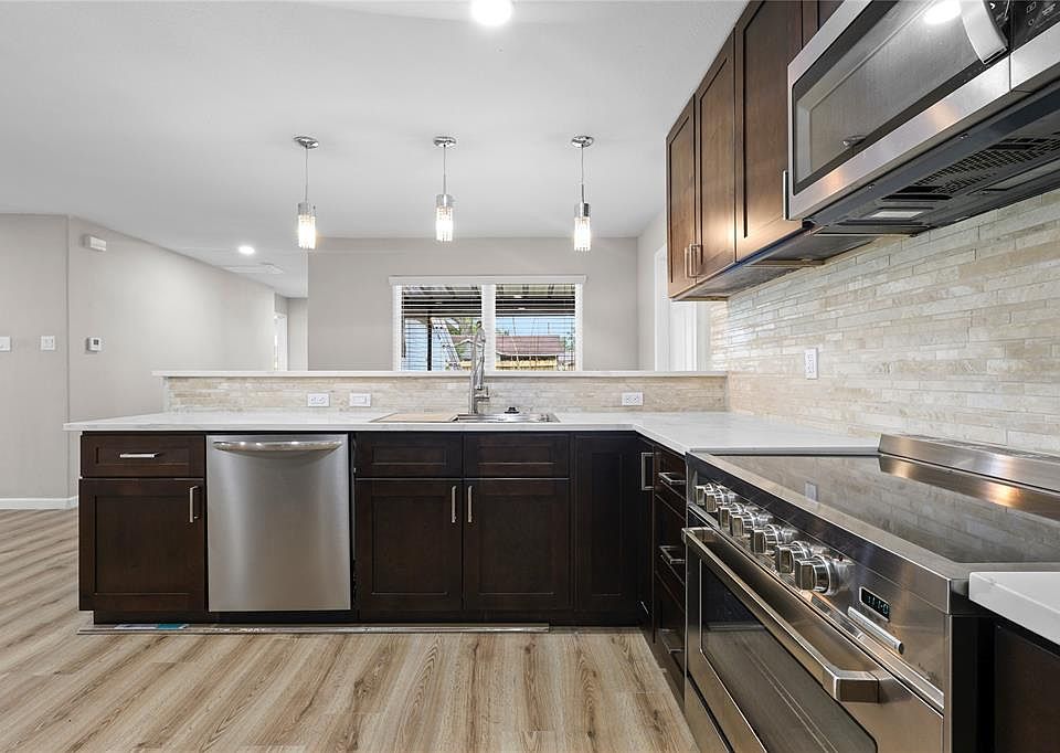 Welcome to your dream home! This beautifully remodeled open-concept layout is designed for modern living and effortless entertaining. Fresh paint inside and out The gorgeous new kitchen features 44" soft-close cabinets, fresh designer paint, quartz countertops throughout, an upgraded backsplash, and a charming farmhouse sink. Enjoy a spacious breakfast bar, sleek stainless steel appliances, a premium Samsung refrigerator a 36" electric cooktop, and a dedicated gas line ready if you prefer a gas stove. The kitchen also includes a large walk-in pantry for maximum convenience. Every detail has been thoughtfully upgraded with all-new electrical and plumbing fixtures, stylish recessed lighting throughout, new flooring, brand-new windows, and Apex Plumbing tankless water heater. The remodeled primary bath is a private retreat you’ll love!