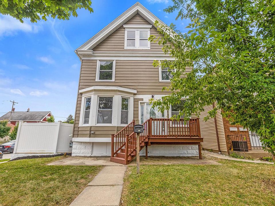 Step into this beautifully refreshed 4-bedroom, 3-bath home that's packed with updates! Featuring two full stories, a finished attic, and a finished basement with two office/den spaces. The main level offers a spacious family room, formal dining area, extra living space, and a stunning updated kitchen with new quartz countertops, tile flooring, and backsplash. Enjoy peace of mind with a brand new roof and gutters on both home and garage, freshly painted siding, two decks, a front porch, and new concrete patio and sidewalk. A 2.5 car garage, private fenced-in yard, central air, newer mechanicals and a home warranty complete this move-in-ready gem!