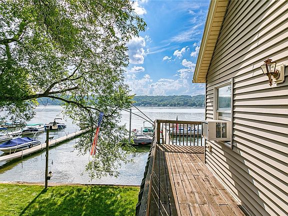 Little slice of heaven on Conesus Lake w/ 88 ft of lake front & fabulous break wall! Year round home or make it your summer lake home get away! Dock can fit 4/5 water vehicles & could easily be rented out for income potential. Conesus Lake Campground across street- ideal Short Term Rental opportunity! Enjoy summer breezes on deck overlooking the scenic lake views or on the covered patio off the walk out lower level. 3 bedrooms & 2 full baths! 1st floor laundry. Extra large 2 car garage. Unfinished attic space could add some additional space - currently scuttle access. Wired for portable generator. Tear off roof 2009 & vinyl siding 2009. 2016 Water tank. Seller prefers to convey property w/ any items left in property @ time of closing. Stated 1312 sq ft is verified by appraisal. Delayed negotiations 9/6 @ 10am.