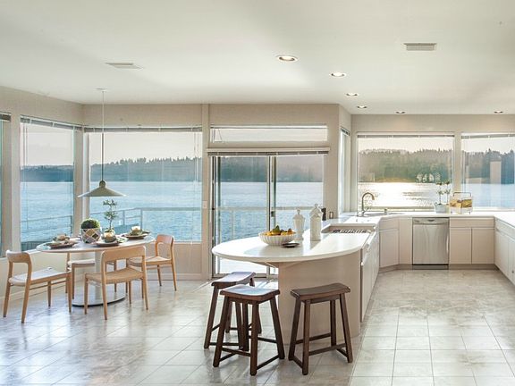 Striking contemporary Mercer Island waterfront with clean lines, outstanding outlook. 85' of low bank waterfront, playful level lawn, swimming beach, dock and boat lift. Open flowing 4 bedroom floor plan captures sweeping lake views through walls of windows. Soaring ceilings, plentiful art walls, expansive entertaining spaces. Generous 3 car garage, gentle drive, large guest parking court. Radiant heat. Generator. Timeless, built to last, impressively updated.