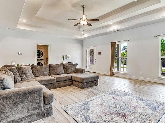 **VA assumable loan at just 3.38%!!** This home is as smart as it is beautiful! Boasting all sorts of energy efficient features, this home is Earth Cents certified and comes with paid off solar panels (electric bill is usually around $40 a month). The beautiful split floor plan offers an open layout in the great room with wood-look tile unifying all the spaces. The center island offers a two-sided breakfast bar as well as lots of space for all your kitchen storage needs. The 9 foot ceilings and 10 foot tray ceilings add another dimension of spaciousness to the split floor plan. The master ensuite bathroom has a beautiful garden tub, lots of counter space with the double vanity, a water closet for your convenience, and a beautiful custom-tiled, smooth entry separate shower. The walk-in closet in the master conveniently connects to the laundry room. Perfect for guests or a teen needing some extra space, the fourth bedroom also has its own ensuite bathroom. Step out into your lovely lanai (with LED canned lighting) from the double French doors in your kitchen overlooking the fully vinyl fenced backyard with no neighbors behind the property! Enjoy a long list of energy efficiency features in this home including an EV outlet in the oversized garage, energy efficient multi-setting LED lighting and water saving fixtures, energy efficient range as well as built-in microwave and dishwasher, vinyl energy saving Low-E windows, and energy efficient heat pump, water heater and HVAC system. The property also conveys with an ADT alarm system in place for new owner to start service and a Nest smart thermostat. Close to everything you need but also nestled in nature’s beauty, you will love making this property your own.