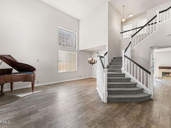 As you enter the property, you are greeted by a custom-designed wrought-iron gate with automatic access, guiding you up the private drive to this stunning residence. It's the perfect blend of security, style, and sophistication. As you make your way in, you'll immediately notice the soaring ceilings and large windows that fill the home with natural light. Along with wood look tile flooring and fresh interior paint and updated stairway rails which give the entire space a bright, modern feel. The spacious family room features a cozy gas fireplace — ideal for relaxing evenings or family gatherings. Downstairs you will find a full bedroom and bathroom, perfect for guests, in-laws, or multi-generational living. Step inside this remodeled kitchen featuring modern cabinetry, walk-in pantry, sleek quartz countertops, large center island and a gorgeous designer backsplash, along with a buffet area that adds the perfect touch for entertaining guests. Upstairs, the spacious bedrooms include a beautiful primary suite with double door entry, and loft area big enough to install a 5th bedroom, featuring an oval soaking tub, a separate shower, and a private double vanity area — your own peaceful retreat at the end of the day. Step outside to a large backyard, beautifully designed for both relaxation and entertaining. A gated entrance provides added privacy, while the lush landscaping creates a serene setting. The spacious patio is the perfect spot for evening gatherings, alfresco dining, or simply unwinding. This home also includes a three-car garage offering plenty of space for vehicles, storage, or even a workshop. Conveniently located near grocery stores, restaurants, schools, and just minutes from the local waterpark, this home has it all — comfort, convenience, and undeniable curb appeal. Do not miss out on this opportunity to call this home your own! (Photos include virtual staging)
