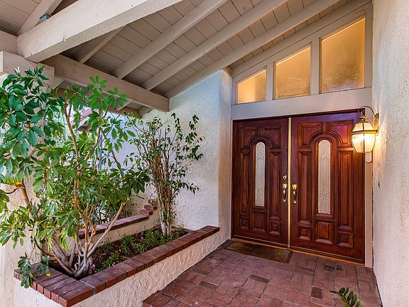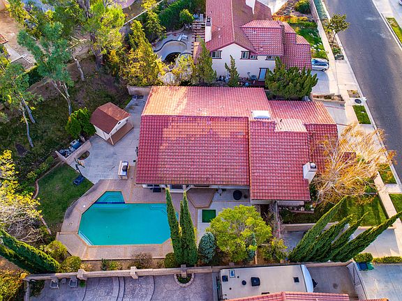 Expanded Indian Hills Ranch single story pool home featuring 4 bedrooms, 2.5 bathrooms, 2433 sq. ft. of living space and sitting on a 12,798 sq. ft. lot with a gated RV parking area. Features include a double door entry, hardwood and carpet flooring, plantation shutters, vaulted ceilings, a step-down living room with a brick fireplace and built-in bookcase, a wet bar, a powder room, a dining room with an updated chandelier, a spacious laundry closet, a kitchen with stainless LG appliances including a 6-burner gas range and oven, a microwave, a dishwasher, a stainless sink, a garden window, a breakfast bar and the breakfast nook is adjacent to the expanded family room with view windows to the backyard and pool area hosting a large shed, aggregate concrete decking, a sparkling pool and spa, a patio area, a side gated RV area and a 2-car garage with storage. The master suite features a slider to a side patio, dual closets, a shower over tub and dual sinks. There are three thoughtfully designed secondary bedrooms with mirrored closet doors (two bedrooms are expanded and very spacious). The hall bathroom hosts dual sinks and a shower over tub. This wonderful home is located in east Simi Valley near parks, the Simi Hills Golf Course, great schools & more!