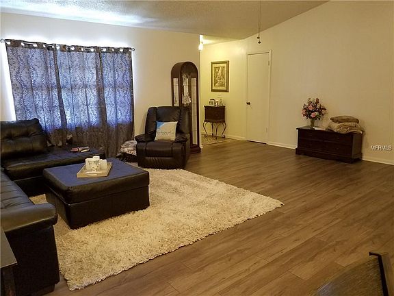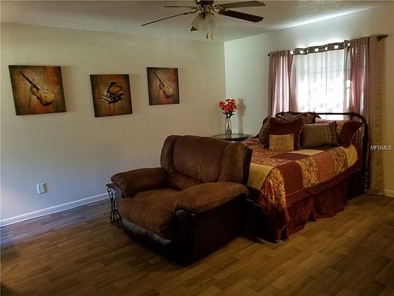 Beautiful 3 bedroom 2 bathroom home that sits on over an acre of land!!!! This home awaits its new owner! As you pull up to this home, majestic views of the spacious yard with mature trees consumes your sight. Once you enter the home, you'll find a functional open floor plan that's great for entertaining. Most of the floors have been upgraded! The kitchen is partially upgraded. The dining area leads out to the covered patio which overlooks the large back yard. This home also includes a huge storage shed with electrical outlets and a RV hook up. This property is a must see!!! There are no CDD's in this community and the HOA fees are low!!