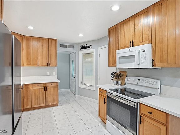 RENNOVATED SINGLE-STORY HOME WITH NO HOA! This beautifully upgraded 4-bedroom property features low-maintenance desert landscaping, a private patio, and synthetic grass in the backyard. Inside, you’ll find a spacious layout filled with an abundance of natural light, highlighted by hard flooring throughout and tasteful upgrades in every room. The kitchen is complete with stainless steel appliances, modern finishes, and a bright-airy feel. The spa-like primary ensuite offers a relaxing retreat with updated touches that elevate the entire home. A truly move-in-ready gem with comfort, style, and convenience — and NO HOA!