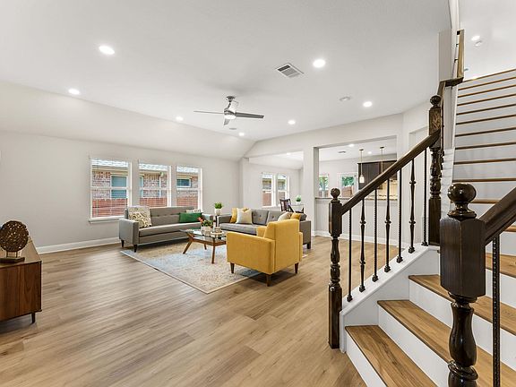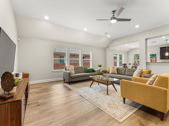 Set on a cul-de-sac that backs to a greenbelt, this Sweetwater home combines smart design with Hill Country surroundings. The layout lives like a one-story, offering 3 bedrooms, 2 full baths, and a private office on the main level. Upstairs, a large game room with its own full bath gives you the flexibility to create a 4th bedroom, media room, or guest suite—whatever suits your needs. The open-concept living area is bright and inviting, anchored by a spacious kitchen with an oversized island, abundant cabinetry, and plenty of prep space for cooking or entertaining. Modern vinyl plank flooring runs throughout the home—no carpet anywhere—for a sleek, low-maintenance finish. Life in Sweetwater means more than just a beautiful home. The community offers two resort-style pools, a neighborhood gym, pickleball, basketball, and sand volleyball courts, plus a putting green, dog park, and miles of scenic hiking and biking trails. You’ll also enjoy planned social events, highly rated Lake Travis ISD schools, and a location close to golf courses, shopping, dining, and Lake Travis itself—all within an easy drive of downtown Austin and the airport.