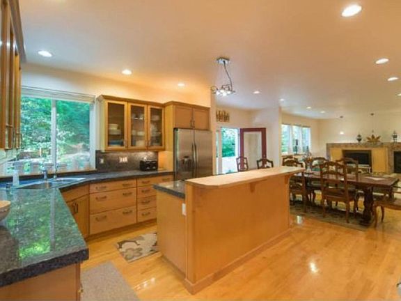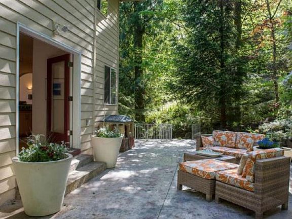 Spacious, peaceful modern five bedroom home 1.5 miles from the cafes and restaurants of Multnomah Village. Perfect for dual family living. The half-acre property features pristine forest land, lawn, hardscape patio, and a seasonal creek. Quiet and private: no neighbors behind or next to you. Soaring cathedral ceilings and 9-foot windows fill your days with sunlight and gorgeous tree views. Granite counter kitchen, spacious modern bathrooms, new carpets, two fireplaces, two studies (in addition to bedrooms), oversize four-car garage, large bedroom/bathroom with separate entrance. The prestigious Ashcreek neighborhood is a lovely place to walk to woods, schools, dog park, and prizewinning schools. Fast 20 min commute to downtown Portland, Beaverton, Sellwood and Eastside. Long or short term rentals available. Tenant pays utilities